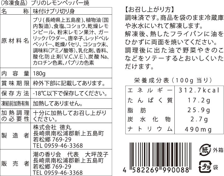 ・ブリのレモンペッパー焼(冷凍)約 180g