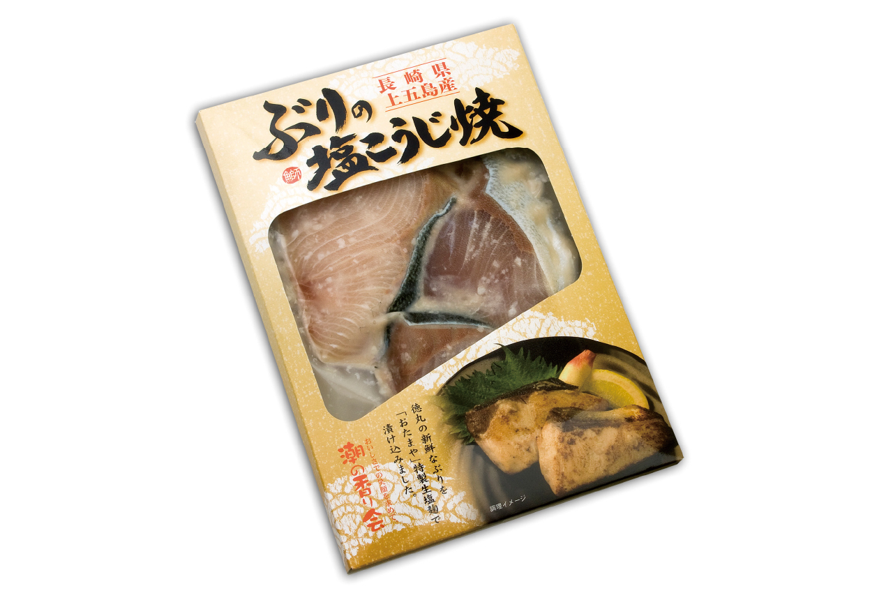 徳丸の新鮮なぶりを、山形県米沢市の「おたまや」特製生塩麹に漬け込みました。塩こうじの風味とブリの旨味は相性抜群。グリルやフライパンで焼くだけで本格和食のメインディッシュが完成です。