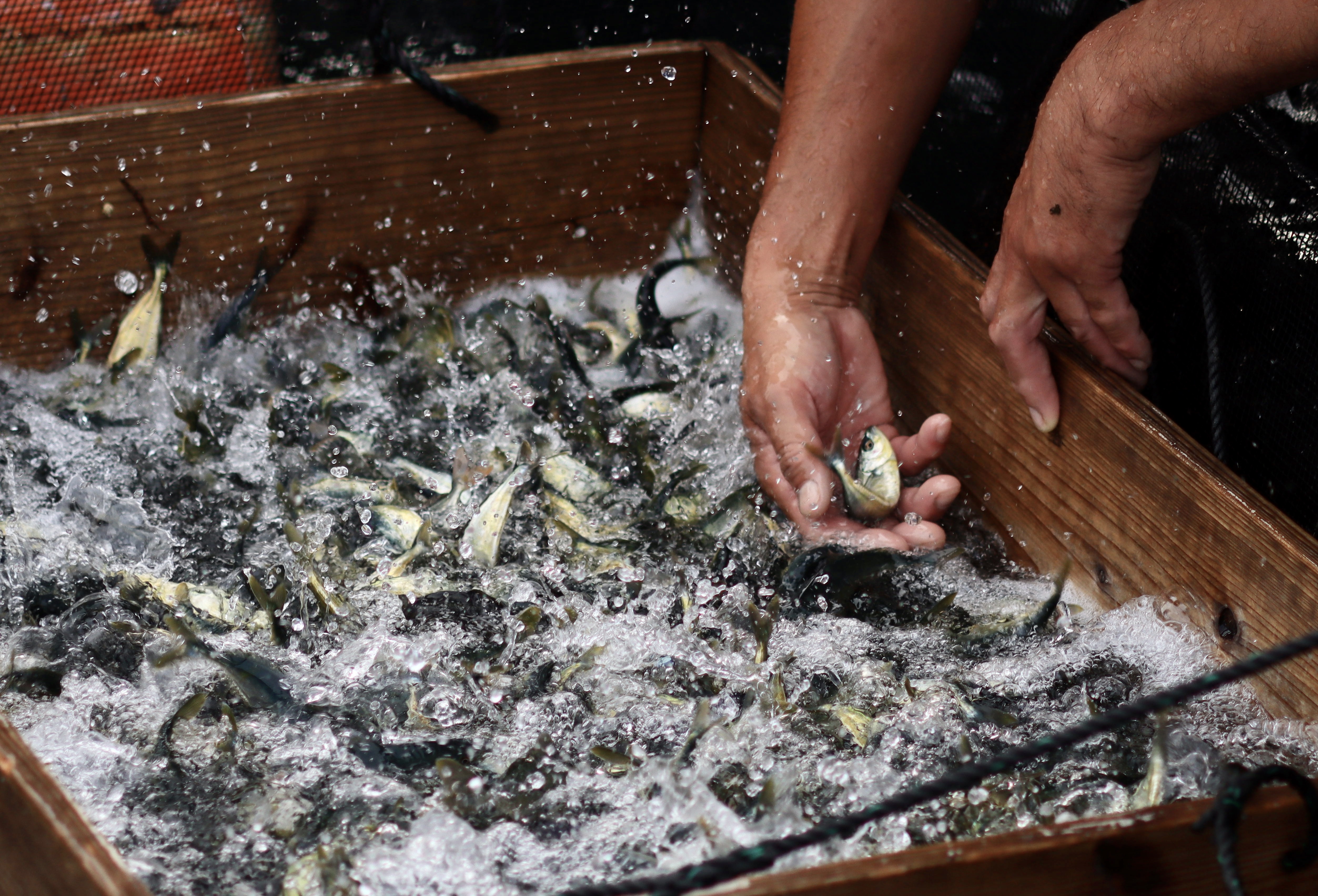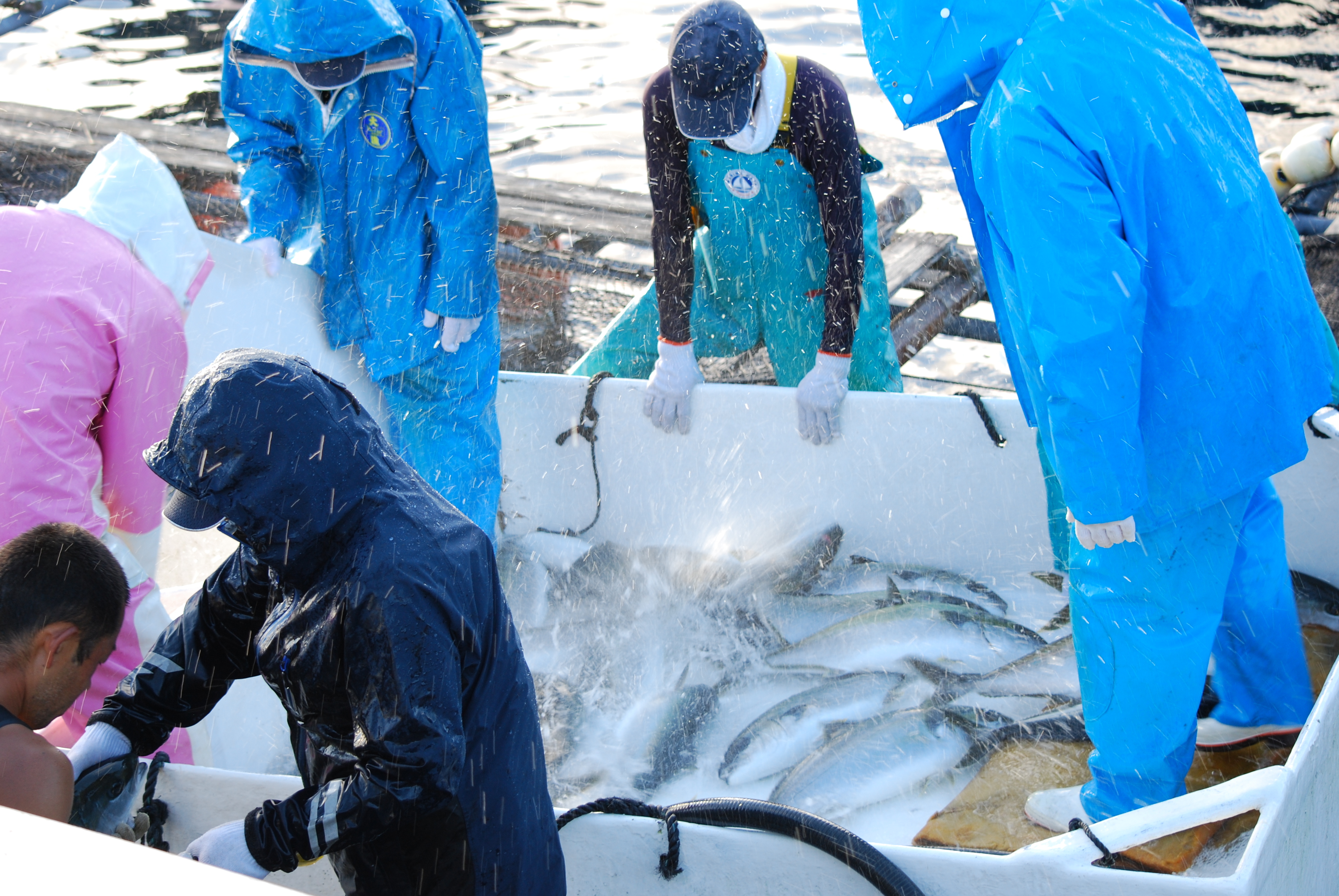 赤ちゃんの頃からていねいに育てられる徳丸の魚たち。生産にも携わる「島のお母さんたち」もありったけの愛を注いで見守っています。そんな愛情いっぱいで育てられた新鮮なブリやクロマグロが「食彩便」の素材です。